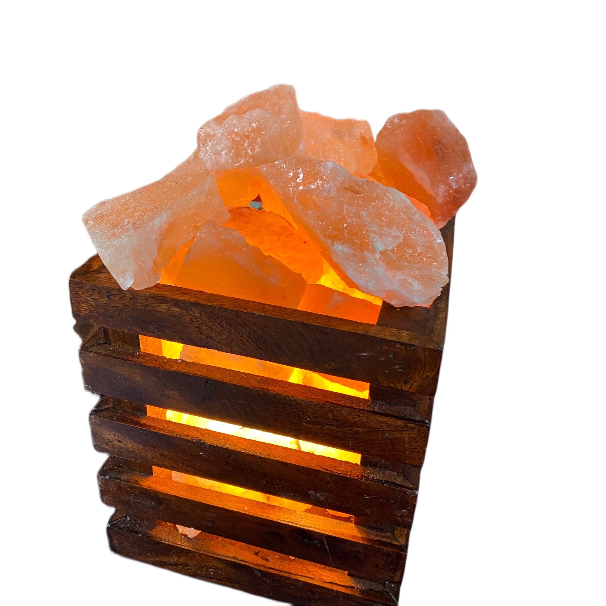 Le lampade sono tutti pezzi unici per forma Le lampade sono tutti pezzi unici per forma e colore . Il cristallo di sale è un minerale fossile ,datato 250 milioni di anni . Viene trasformato in lampade di sale in modo assolutamente artigianale per conservare le priorità l’energia e i benefici terapeutici. La lampada ha una base in legno fissata al cristallo di sale , è provvista di filo e lampadina ( conforme norme CE). Armonizzano la casa e qualsiasi altro ambiente,adatta anche come luce notturna per la camera dei bambini. Una caratteristica fondamentale individuata in queste lampade e’ la ionizzazione. Viviamo in luoghi dove siamo esposti a diverse cariche ambientali dovute da elettrodomestici, computer ,fumo da sigaretta le quali causano un grande aumento degli ioni positivi nell ‘ aria e quindi uno squilibrio.Per riportare L equilibrio dobbiamo arricchire l ‘ aria con ioni negativi forniti dalle lampade in maniera naturale. Per ottenere i migliori benefici è opportuno tenere la lampada accesa il più possibile durante la giornata. Le lampade di sale vanno protette dall ‘ umidità e pertanto non è consigliabile posizionarle all’aperto . Consigliamo di pulire soltanto a secco e in caso di contatto con umidità, lasciarle accese per alcune ore un modo da far evaporare l’ umidità in eccesso . La ionizzazione è proporzionale alle dimensioni della lampada. Si consiglia di osservare la seguente tabella: